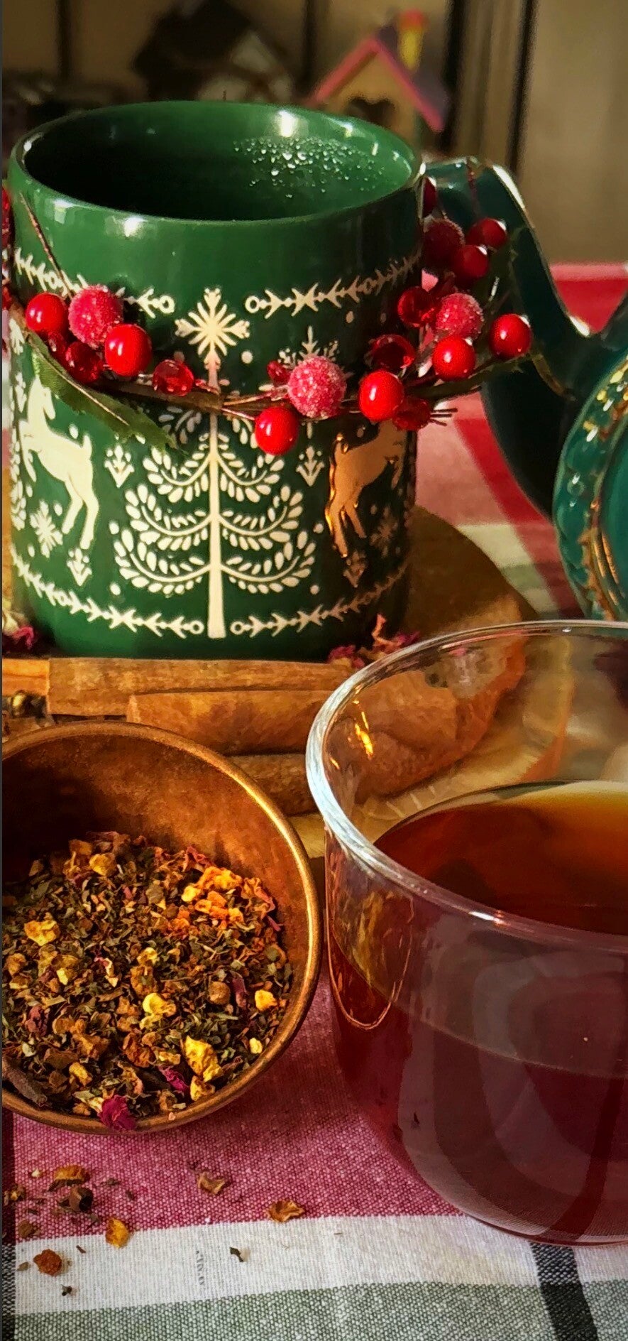 Jitter free Christmas tea! This herbal blend is a naturally caffeine free alternative to our very popular CHRISTMAS COTTAGE TEA